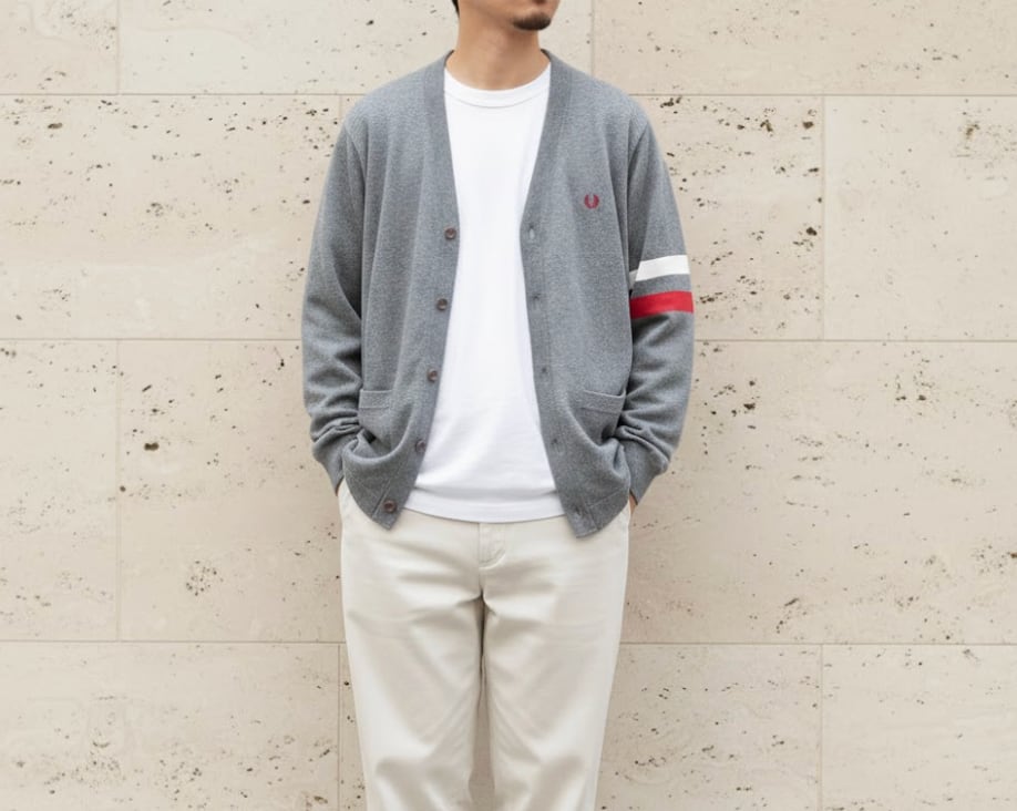 FRED PERRY フレッドペリー クラシックワンポイントロゴ カーディガン グレー Lサイズ